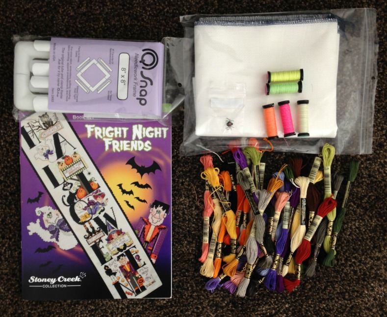 See:  I have allllll the threads - including some glow-in-the-dark ones that I've never used before - as well as a new way to hold the Aida cloth: a Q-Snap.  Apparently it's an advancement over the plastic/wood hoops. Who knew?
