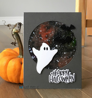 First, a Halloween 'night sky' using a technique inspired by Amy Rysavy (love her videos!), of Prairie, Paper and Ink fame (here). As she mentions, this looks like a 'hot mess' as you create, but the star splatters make a remarkable transformation into a spooky night sky. My splattering, however, needs work!