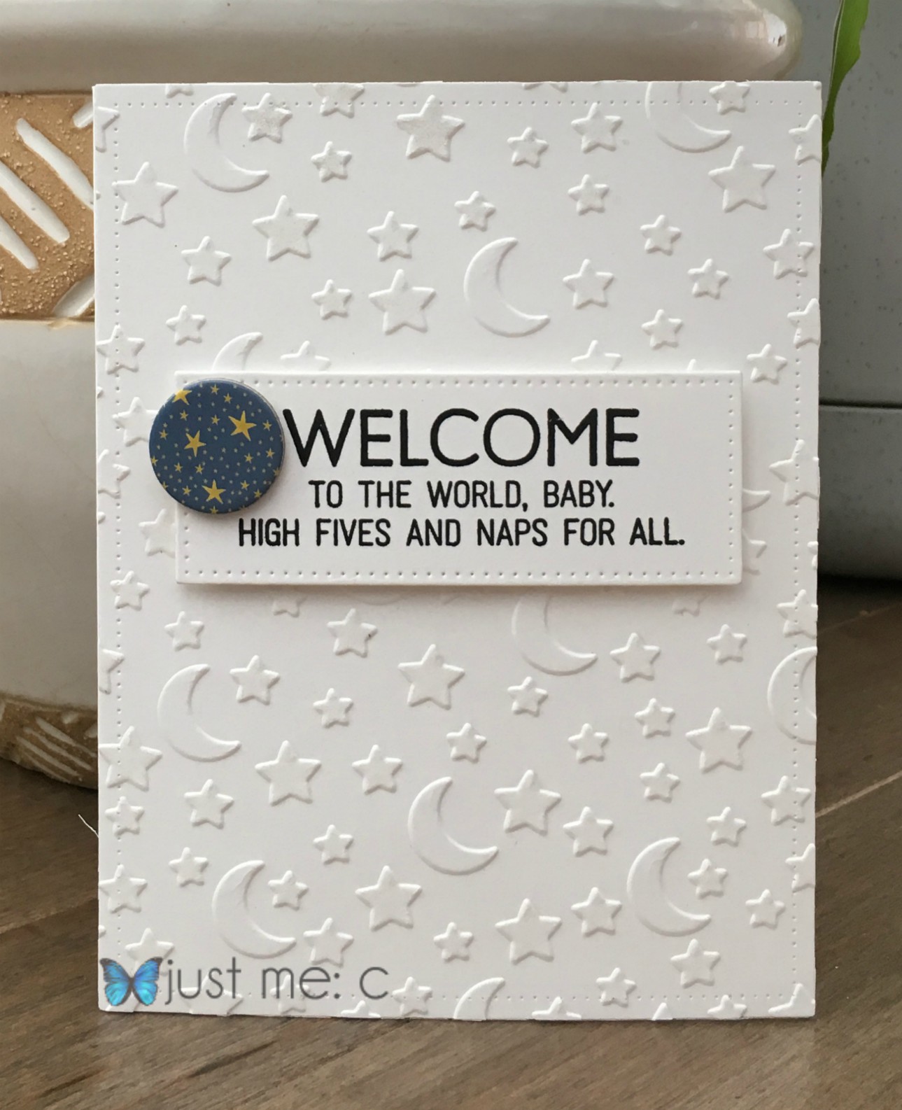 Love all your celestial cards! Great background on the fun Halloween and star one! And the baby card is so sweet! Love that embossing folder! You can get carried away any time, my friend!